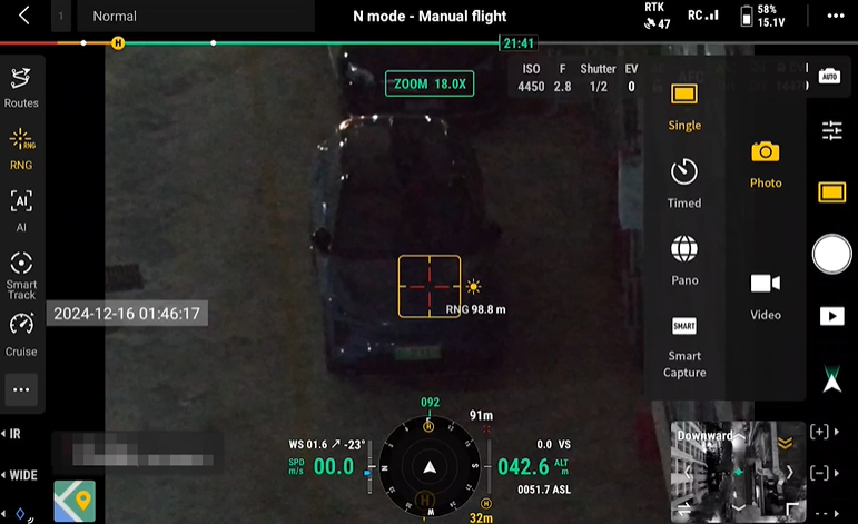 Smart Low-Light PhotoThe Matrice 4 series cameras feature larger apertures and intelligent low-light capabilities, significantly enhancing performance and improving operations during dusk and nighttime.