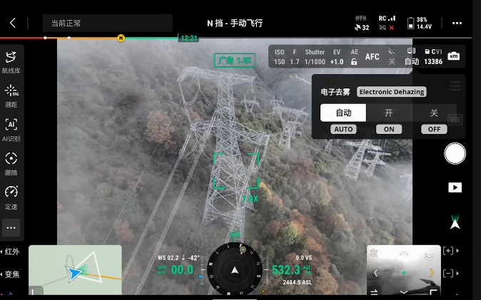 Electronic Dehazing, Clear as EverIn conditions such as smog or atmospheric humidity, Electronic Dehazing supports three modes (Low, Medium, High) to improve the imaging clarity of the Matrice 4 series to match different operational environments and requirements. |