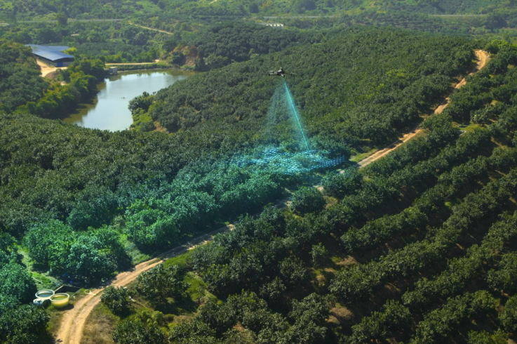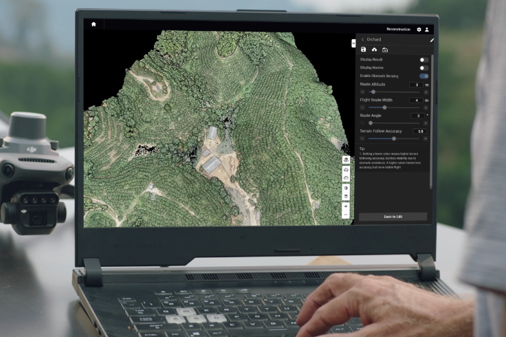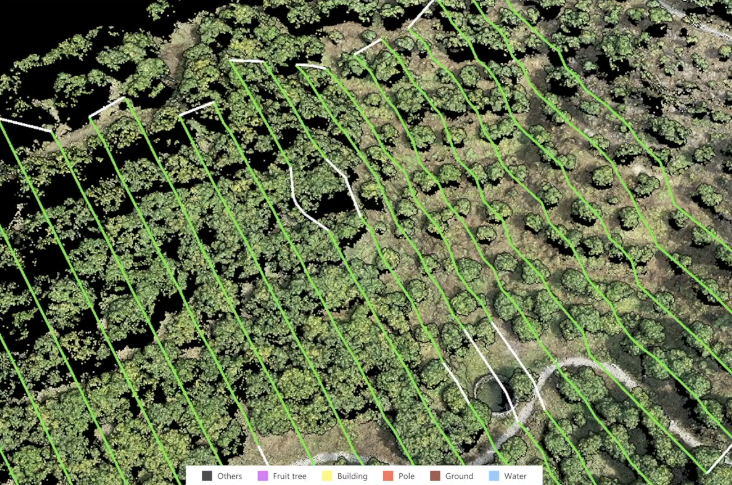 Mavic 3M enables terrain-following aerial surveys of orchards, even on sloped landscapes. When used with DJI Terra or DJI SmartFarm Web, it can create high-resolution orchard maps, automatically count trees, distinguish trees from other objects or obstacles, and generate 3D operational routes for agricultural drones, enhancing both safety and efficiency.