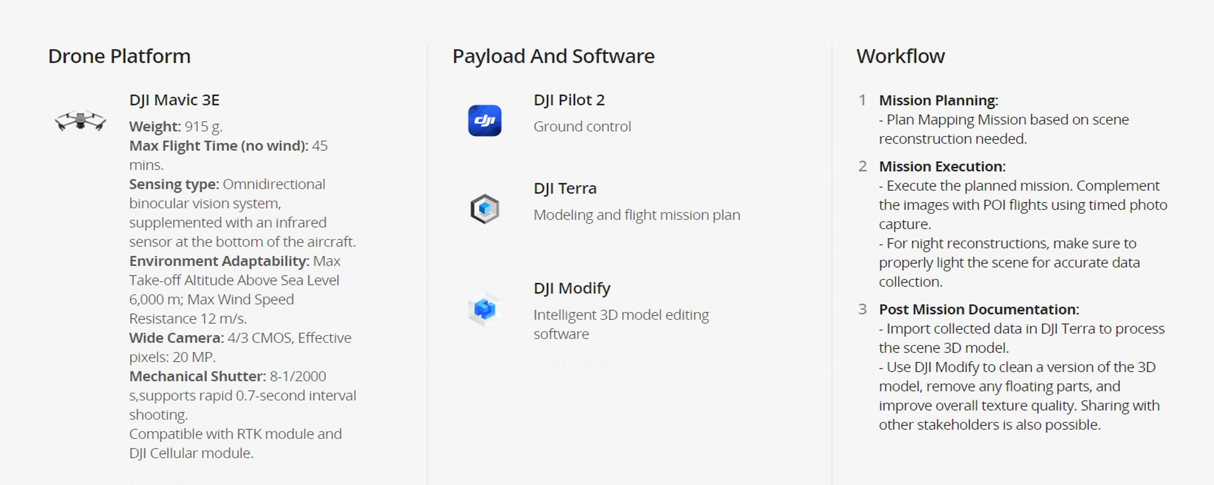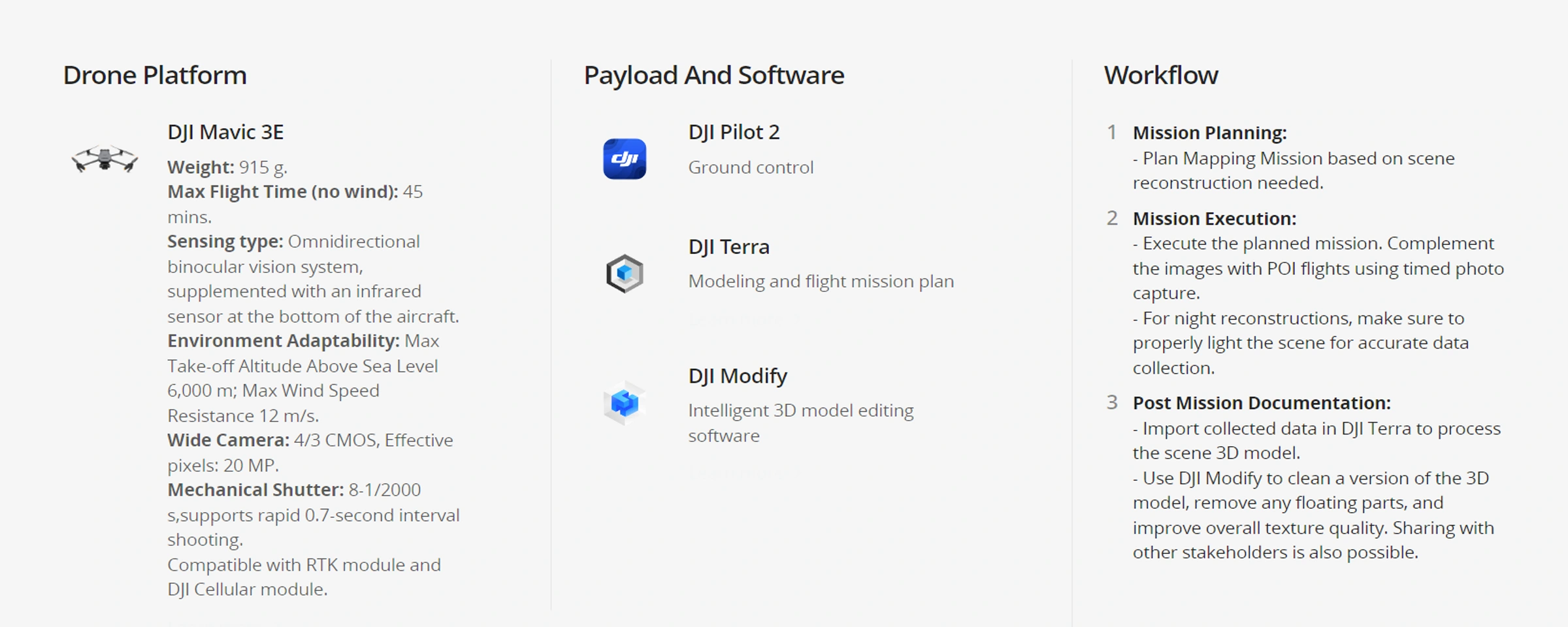 | -Inadequate data collection and a lack of realistic visual representation can add complexity to legal cases. | -Capture realistic reconstruction models of the scene, which can be later used throughout the legal process. |